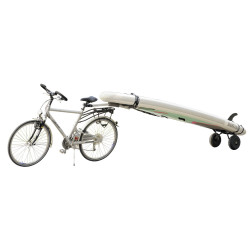 Chariot remorque idéal pour transporter des planches de paddle à vélo.