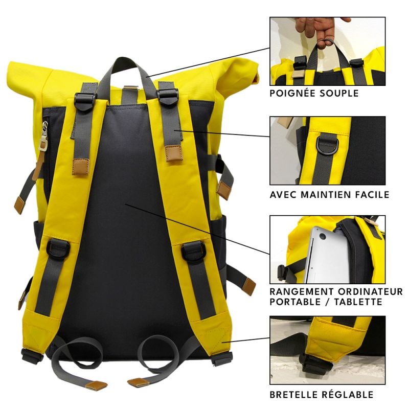 Pratique et flexible, le système roll top offre un accès rapide et sécurisé grâce à une fermeture par zip.