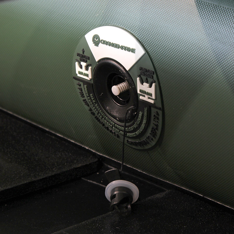 Les annexes Orangemarine sont pourvus de valves de gonflage anti-retour pour éviter que l'air ne s'échappe lorsque l'on retire le tuyau du gonfleur ou lorsque l'on dévisse accidentellement le bouchon de la valve :