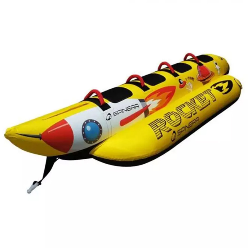 Dédiée aux amateurs de sensations fortes en groupe, la Spinera Rocket 4 est une bouée tractée type banane, conçue pour accueillir jusqu’à 4 riders. Pensée pour une utilisation intensive, elle est entièrement recouverte d'une housse en nylon 840D ultra résistante, capable de résister aux frottements, aux tractions et aux fortes accélérations.