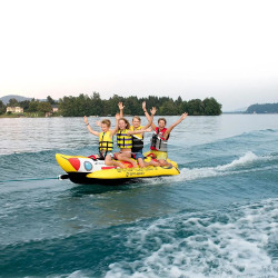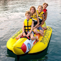 La bouée tractée Spinera Rocket 4 personnes est une banane ultra robuste conçue pour la vitesse, la stabilité et le fun collectif. Recouverte de nylon 840D, avec poignées rembourrées et système 3 chambres, elle garantit des sessions intenses en toute sécurité.