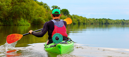 Comme pour la mi-saison, pour la pratique du kayak durant l’été, optez pour un gilet d’aide à la flottabilité (50N). Équipez-vous également d'un top anti UV pour vous protéger des coups de soleil et un maillot de bain (voire un shorty si vous êtes plutôt frileux).