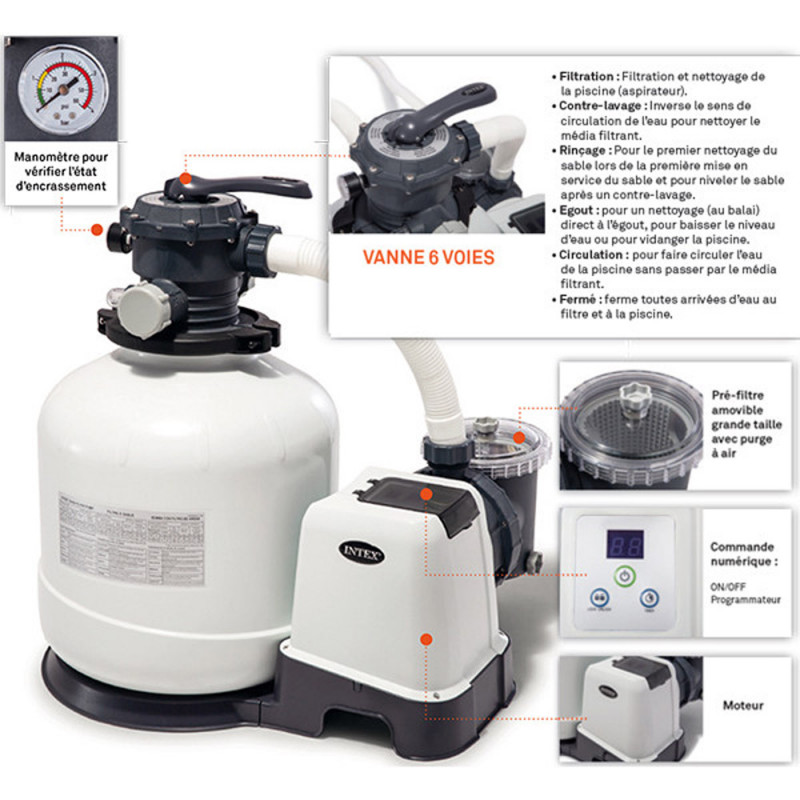 Pour un entretien de qualité de votre piscine le filtre à sable/verre de Intex est la solution