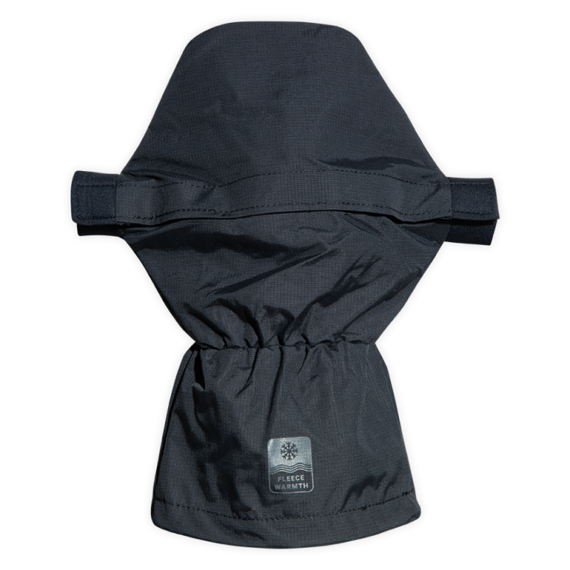Manchons en tissu respirant et fleece intérieur, avec un élastique au poignet et une boucle pour faciliter l’enfilage de la deuxième main.
