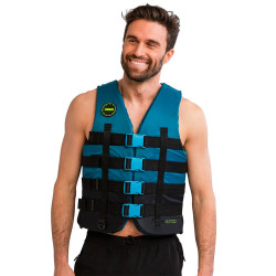 Le gilet 4 boucles de Jobe représente un gilet de sauvetage certifié ISO 50N, conçu à partir du nylon le plus résistant du marché. Les panneaux avant et arrière de ce gilet sont constitués de mousse de PVC souple à l'avant et de mousse EPE à l'arrière, assurant ainsi un confort optimal et une protection accrue. Doté d'un anneau en D pour la fixation du cordon du coupe-circuit et d'un système de drainage efficace, ce gilet évite la rétention d'eau.