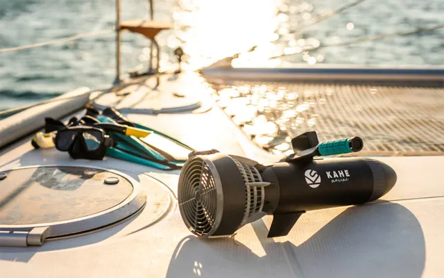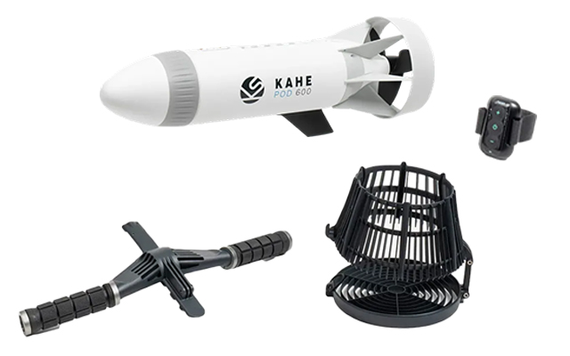 - Le moteur nautique Kahe POD - étanche IP68 : utilisable jusqu'à 5 mètres de profondeur en mode scooter sous-marin.