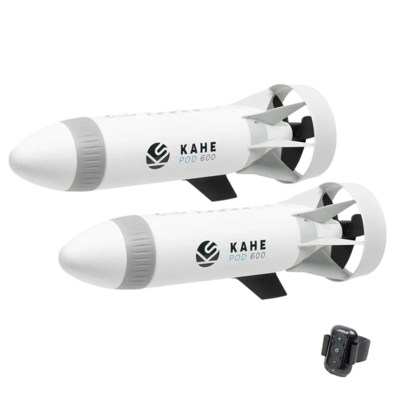 - 2 moteurs nautiques Kahe POD - étanche IP68 : utilisables jusqu'à 5 mètres de profondeur en mode scooter sous-marin.