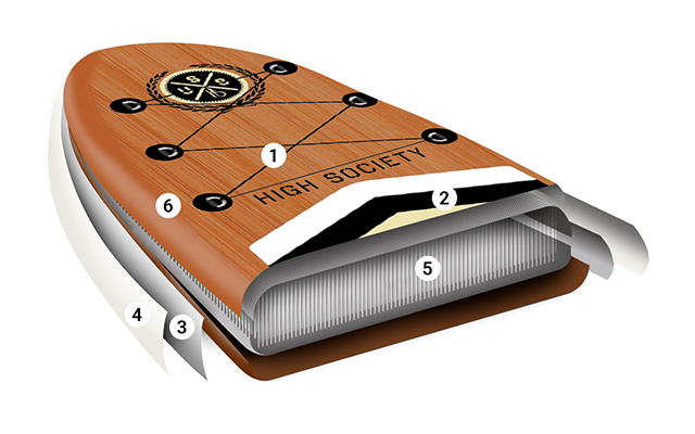 Le paddle combine deux couches de PVC fusionnés, une construction plus haut de gamme que la plupart des paddles sur le marché. Les avantages sont : rigidité, solidité et une charge maximale plus importante.