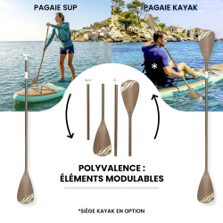 - Pagaie : 2 en 1 pour passer du mode SUP au mode kayak (attention, le siège est vendu séparément)