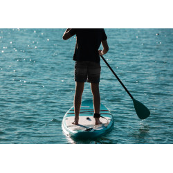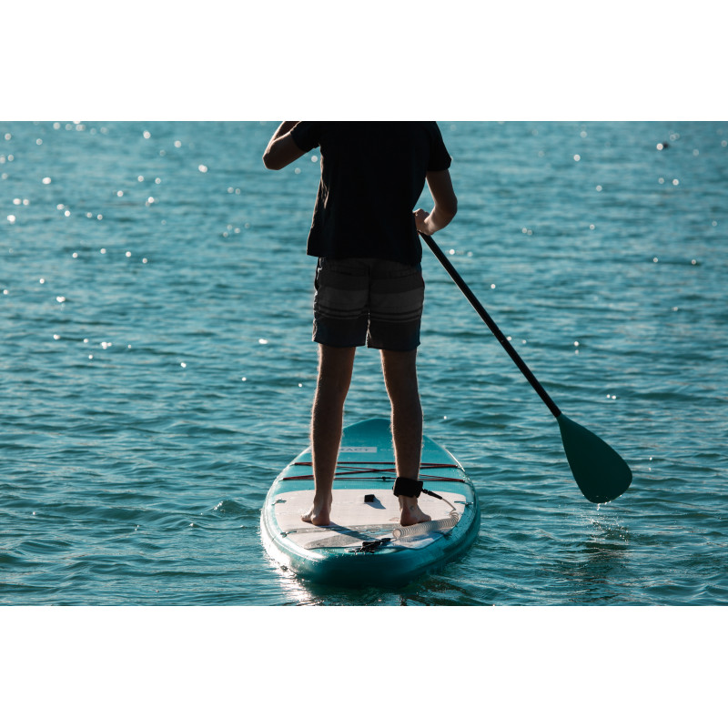 Un SUP gonflable idéal qui combine maniabilité et stabilité, offrant une glisse incomparable grâce à ses deux ailerons fixes, son aileron amovible et son design spécifique. Sa polyvalence est indéniable, faisant de cette planche un choix judicieux.