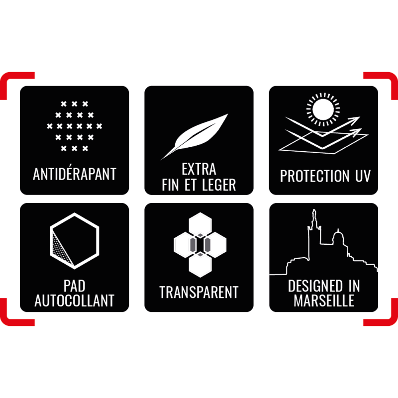Les grips Hexapads sont parfaits pour les surfaces glissantes comme votre planche de sup ou surf, ce système d’hexagones autocollants permet de laisser votre wax de côté afin d’avoir une adhérence idéale qui dure dans le temps.
