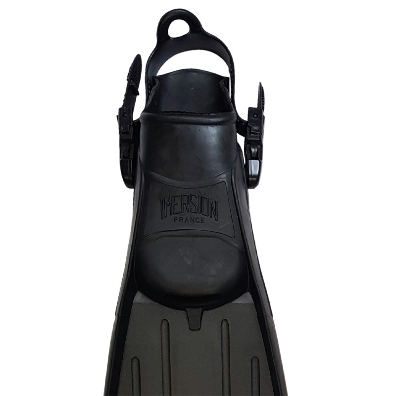 Conçue pour la performance en apnée profonde, la palme IMERSION E:BLACK réglable se distingue par sa voilure rigide, renforcée en résine et fibres synthétiques. Elle offre une flexibilité progressive avec un effet ressort accentué, garantissant une propulsion puissante à chaque mouvement.