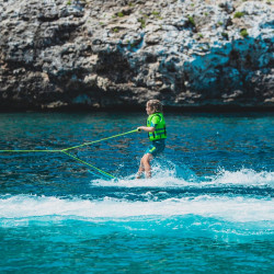 - 2 poignées (une pour l'enfant, l'autre pour l'instructeur qui est à l'arrière du bateau et une barre stabilisatrice)