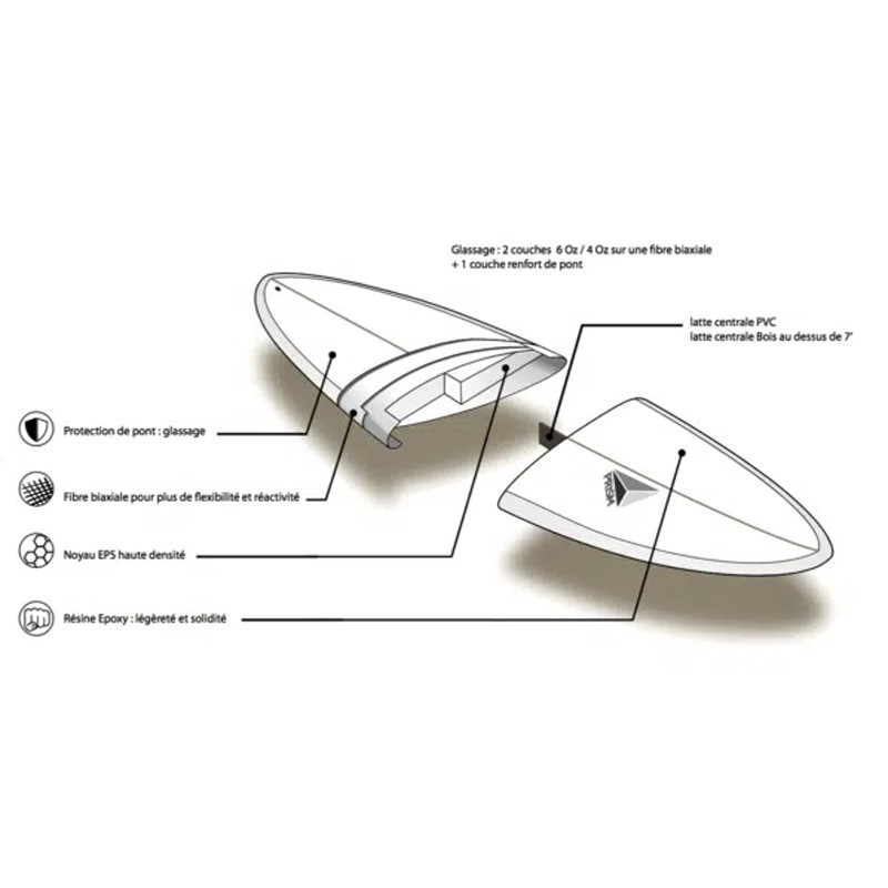 - Dérives FCS fournies avec la planche.