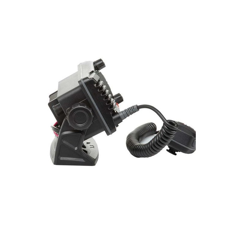Le microphone de poing est équipé d'un dispositif de suppression de bruit parasite, et dispose de touches de raccourcis pour changer les canaux, modifier la puissance d'émission entre 5W/25W, ainsi qu'un accès rapide au canal 16. Le VHF fixe GX1800G est également compatible avec un combiné filaire déporté en option, permettant de contrôler toutes les fonctions de la radio principale à distance. Cette fonctionnalité est particulièrement intéressante pour équiper un second poste de barre sur un voilier ou une vedette. De plus, la fonction Intercom permet de communiquer entre la radio principale et le second combiné déporté.